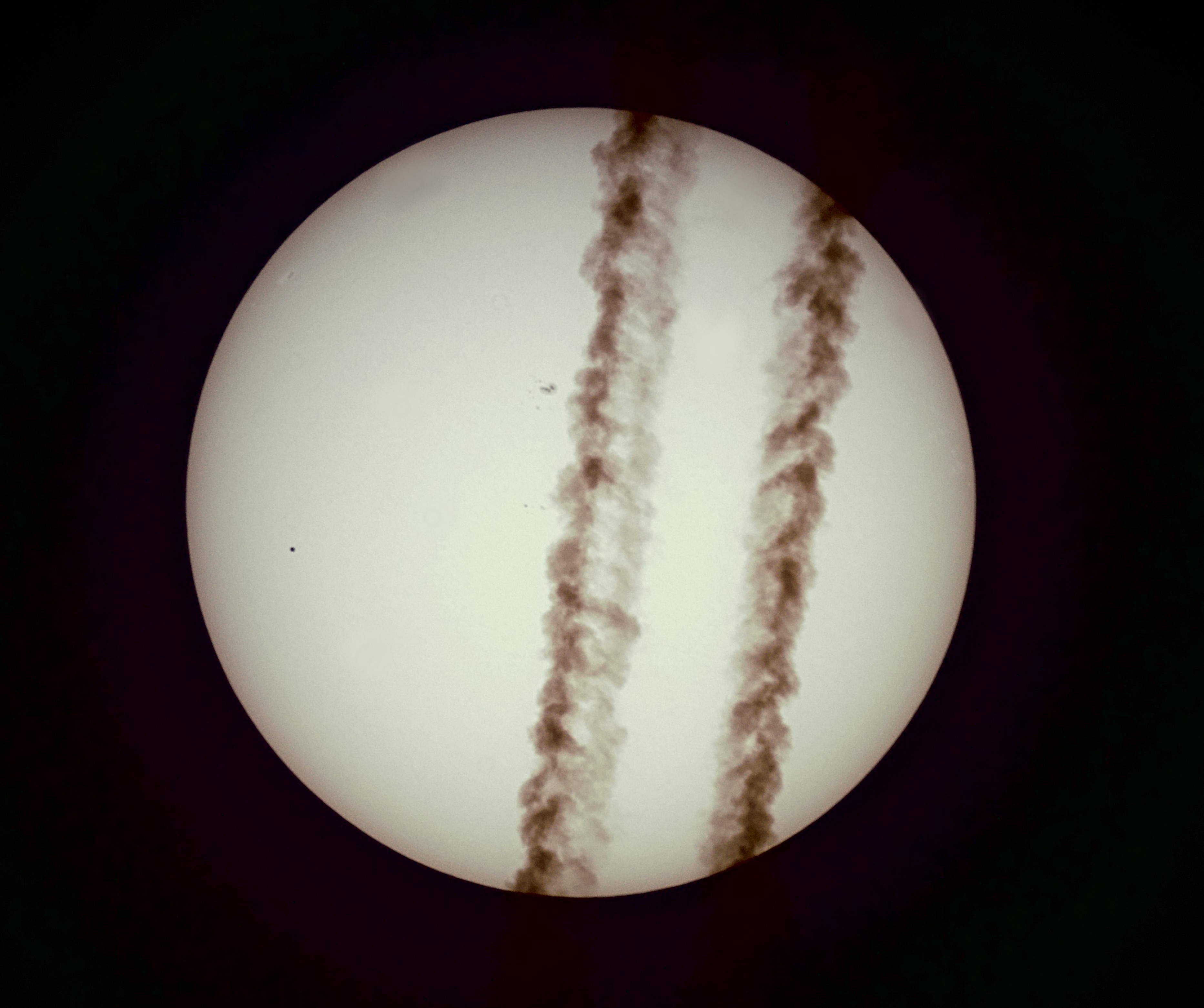 Auch von der Sternwarte war der Transit gut zu beobachten. Zu Ende des Unterrichts waren einige Schüler gekommen, um das Ereignis im Teleskop zu sehen, es waren aber auch regelmäßig immer wieder kleinere Besuchergruppen da, die durch die Fernrohre schauen wollten. Gerade noch kurz vor dem absehbaren Ende durch die Wolken kamen dann noch einige Interessierte.