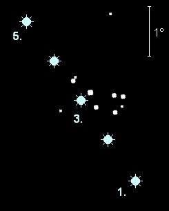 läuft Anfang April durch das Goldene Tor der Ekliptik, das von den Plejaden und Hyaden gebildet wird, und steht zur Monatsmitte 10° nördlich Aldebarans. Mit einer Helligkeit von 8.5m ist der bei Dämmerungsende bereits recht tief stehende Kleinplanet kein lohnendes Objekt mehr.