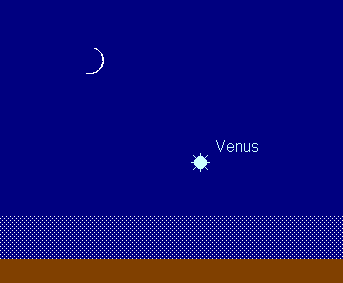 leuchtet nur knapp über dem Nordwesthorizont und geht noch vor Dämmerungsende unter. Der –3.9m helle Planet wandert durch das Sternbild Zwillinge und passiert am 22. Juni den zu dieser Zeit unauffälligen Pollux in 5° südlichem Abstand. Am 25. Juni tritt sie ins Sternbild Krebs. Die Untergänge erfolgen ziemlich konstant kurz vor 23:00 MESZ. Am 12. Juni sieht man die schmale Mondsichel 6° links oberhalb des Planeten. Teleskopisch ist Venus noch nicht interessant. Das 11“ große Venusscheibchen ist am Monatsende noch zu 90% beleuchtet.
