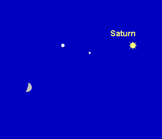 bewegt sich rechtläufig durch das Sternbild Steinbock, verkürzt aber seine Sichtbarkeitsdauer. Geht er zu Monatsbeginn gegen 23:45 MEZ unter, so sinkt er zum Monatsende bereits um 22:00 MEZ unter die südwestliche Horizontlinie. Auch die Helligkeit geht leicht von 0.7m auf 0.8m zurück. Am Abend des 1. November findet man den zunehmenden Mond 5° unterhalb des Ringplaneten und am Abend des 29. November 7° links unterhalb von diesem. Trotz der vergleichsweise geringen Horizonthöhen lohnt sich im November ein letzter teleskopischer Blick auf Saturn. Im Teleskop präsentiert er ein etwa 16.9“ großes, ovales Planetenscheibchen und einen um 14° geöffneten Ring mit einem Längsdurchmesser von etwa 38.1“ und einem Querdurchmesser von 10.0“. Von den fünf hellsten Saturnmonden können im November vier bereits in kleineren Instrumenten ausgemacht werden (von außen nach innen): Titan (8.5m hell), Rhea (9.9m), Dione (10.6m) und Tethys (10.4m). Japetus, der fünfte hellere Saturnmond, steht in größerer Distanz östlich von Saturn und weist in diesem Monat nur die 12. Größenklasse auf.