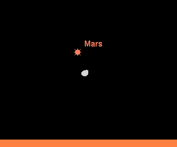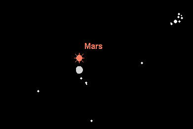 stand Anfang Dezember in einer günstigen Opposition zur Sonne, und ist daher auch im Januar ein sehr auffälliges Objekt im Sternbild Stier, nördlich von Aldebaran. Am 12. Januar wird er stationär und läuft anschließend wieder rechtläufig durch den Tierkreis. Seine Helligkeit geht im Monatsverlauf von –1.2m auf –0.3m deutlich zurück. Dies gilt ebenso für den scheinbaren Durchmesser des Planetenscheibchens, welcher von 14.7“ auf 10.8“ zurückgeht, wobei der Beleuchtungsgrad von 97% auf 92% abnimmt. Der Untergang des Mars verfrüht sich von 6:15 MEZ auf 4:30 MEZ. Der Mond passiert den Roten Planeten in diesem Monat zweimal. Am späteren Abend des 3. Januar befindet sich der Mond nur 0.9° unterhalb von Mars. Am Abend des 30. Januar nähert sich der Mond stetig dem Roten Planeten an. Kurz vor dem Untergang beider Gestirne, am frühen Morgen des 31. Januar, steht der Mond 1.5° unterhalb von Mars. Im Teleskop können im Verlauf des Januars noch viele Oberflächendetails ausgemacht werden, wobei uns die südliche Halbkugel etwas besser zugewandt ist. Dabei ist zu beachten, dass die Albedostrukturen nur einen geringen Kontrast aufweisen, so dass man etwas länger hinschauen sollte.