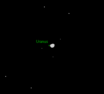 wird am 23. Januar stationär und bewegt sich anschließend wieder rechtläufig durch das Sternbild Widder. Der 5.7m helle Planet verlagert seine Untergänge von 3:45 MEZ auf 2:00 MEZ, wobei er etwa eine Stunde zuvor unsichtbar wird. Die Meridianpassage (beste Beobachtungszeit) verschiebt sich von 20:30 MEZ auf 18:30 MEZ, d.h. gegen Monatsende erfolgt diese bereits in der Dämmerung. In der Nacht vom 1. auf den 2. Januar passiert der Mond den fernen Planeten. Gegen Mitternacht steht Uranus lediglich 3‘ vom südlichen Mondrand entfernt. Am 28./29. Januar steht der Mond kurz vor seinem Untergang 2.5° rechts unterhalb von Uranus. Im Teleskop zeigt sich das grünliche, 3.7“ große Uranusscheibchen ab etwa 100-facher Vergrößerung deutlich. Besitzer mittelgroßer Instrumente können sich auch an den größten Uranusmonden Titania (13.8m) und Oberon (14.1m) versuchen, die sich nie weiter als etwa 30“ bzw. 40“ vom Uranusscheibchen entfernen.