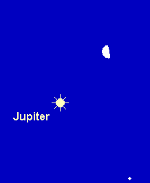 ist strahlender Planet der zweiten Nachthälfte. Er steigert seine Helligkeit im Monatsverlauf von –2.4m auf –2.6m. Seine rechtläufige Bewegung durch das Sternbild Widder verlangsamt er zusehends. Die Jupiteraufgänge verlagern sich von 0:15 MESZ auf 22:15 MESZ, d.h. der Riesenplanet kann gegen Monatsende bereits am späteren Abend gesehen werden. Am 8. August findet man den abnehmenden Mond 3° rechts oberhalb von Jupiter. Im Teleskop kann die dynamische Atmosphäre und das Wechselspiel der Monde nun in bester Qualität beobachtet werden. Der Durchmesser des Planetenscheibchens wächst im Monatsverlauf von 39.8“ auf 43.9“ an.