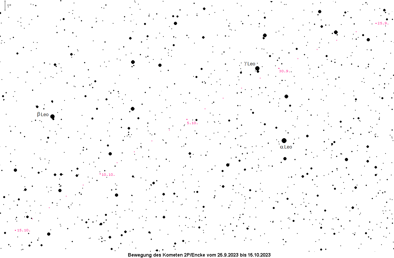 Von Ende September bis Mitte Oktober kann der altbekannte periodische Komet 2P/Encke mit kleineren Instrumenten am Morgenhimmel beobachtet werden. Details entnehme man dem AVKa-Beobachterinfo Nr. 12.