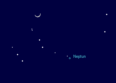 kann von Spezialisten noch während der ersten Monatshälfte im Fernglas aufgesucht werden. Die Beobachtung muss allerdings bereits vor dem Dämmerungsende stattfinden. Der 8.0m helle Planet wandert rechtläufig durch das Sternbild Fische, unweit der Grenze zum Sternbild Wassermann. Eventuell ist die schmale Mondsichel am Abend des 12. Februar eine Aufsuchhilfe. Sie befindet sich 6° links oberhalb des fernsten Großplaneten.