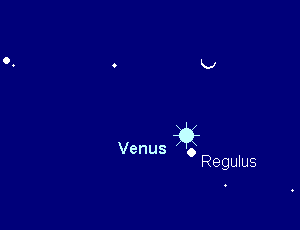 dominiert noch immer den Morgenhimmel, doch nehmen ihre Horizonthöhen langsam ab. Der –3.9m helle Planet wandert zunächst durch das Sternbild Krebs, erreicht aber am 9. September das Sternbild Löwe. Ihre Aufgänge verlagern sich im Monatsverlauf von 3:45 MESZ auf 5:00 MESZ. Der 19. September stellt für Venus ein besonderer Tag dar: zum einen passiert sie Regulus in 0.5° nördlichem Abstand, zum anderen nähert sich die Mondsichel dem Morgenstern zunehmend und bedeckt diesen sogar am frühen Nachmittag, was mit einem Teleskop beobachtet werden kann. Zur bürgerlichen Dämmerung findet man die Mondsichel 3° oberhalb der Venus. Um 14:07 MESZ verschwindet die Venus dann am beleuchteten Mondrand (Horizonthöhe: 42°). Um 15:23 MESZ taucht sie wieder am unbeleuchteten Mondrand auf (Horizonthöhe: 32°). Im Teleskop ist das kleiner werdende Venusscheibchen zum Monatsende nahezu voll beleuchtet. Der Durchmesser geht von 12.5“ auf 11.0“ zurück, während der Beleuchtungsgrad von 84% auf 91% ansteigt.
