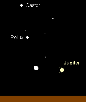verschwindet gegen Monatsmitte in der hellen Morgendämmerung. Der –3.9m helle Planet bewegt sich in diesen Tagen durch das Sternbild Schlangenträger, doch sind dessen Sterne nicht erkennbar. Eine erfolgreiche Beobachtung dürfte zu Monatsbeginn gegen 7:45 MEZ gelingen, zur Monatsmitte erst um 8:15 MEZ. Kurz darauf geht bereits die Sonne auf.