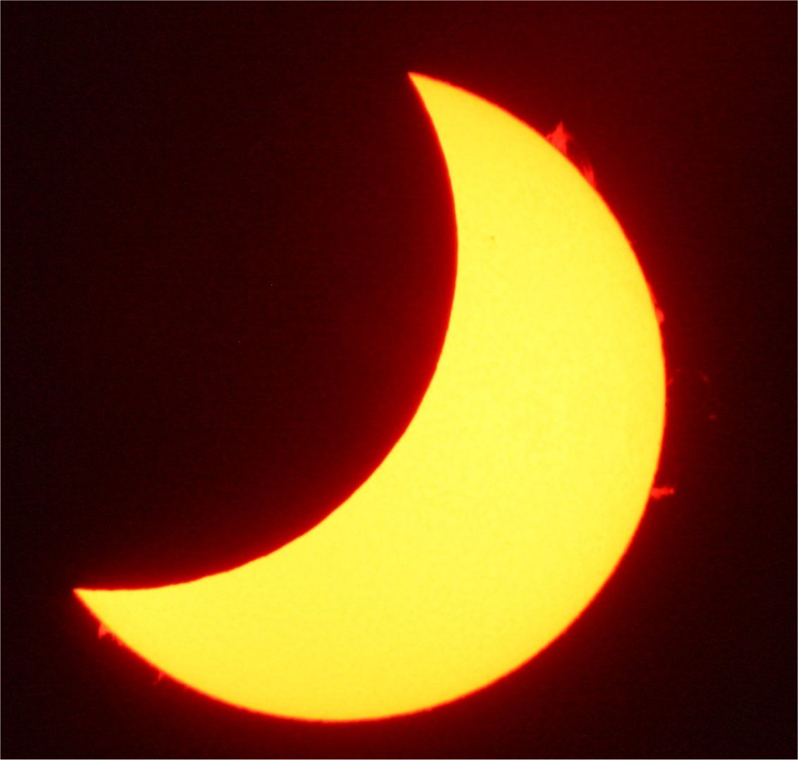 Bilder der Sonnenfinsternis, aufgenommen im H-alpha Licht von unserem Mitglied Ulrich Schmidt.