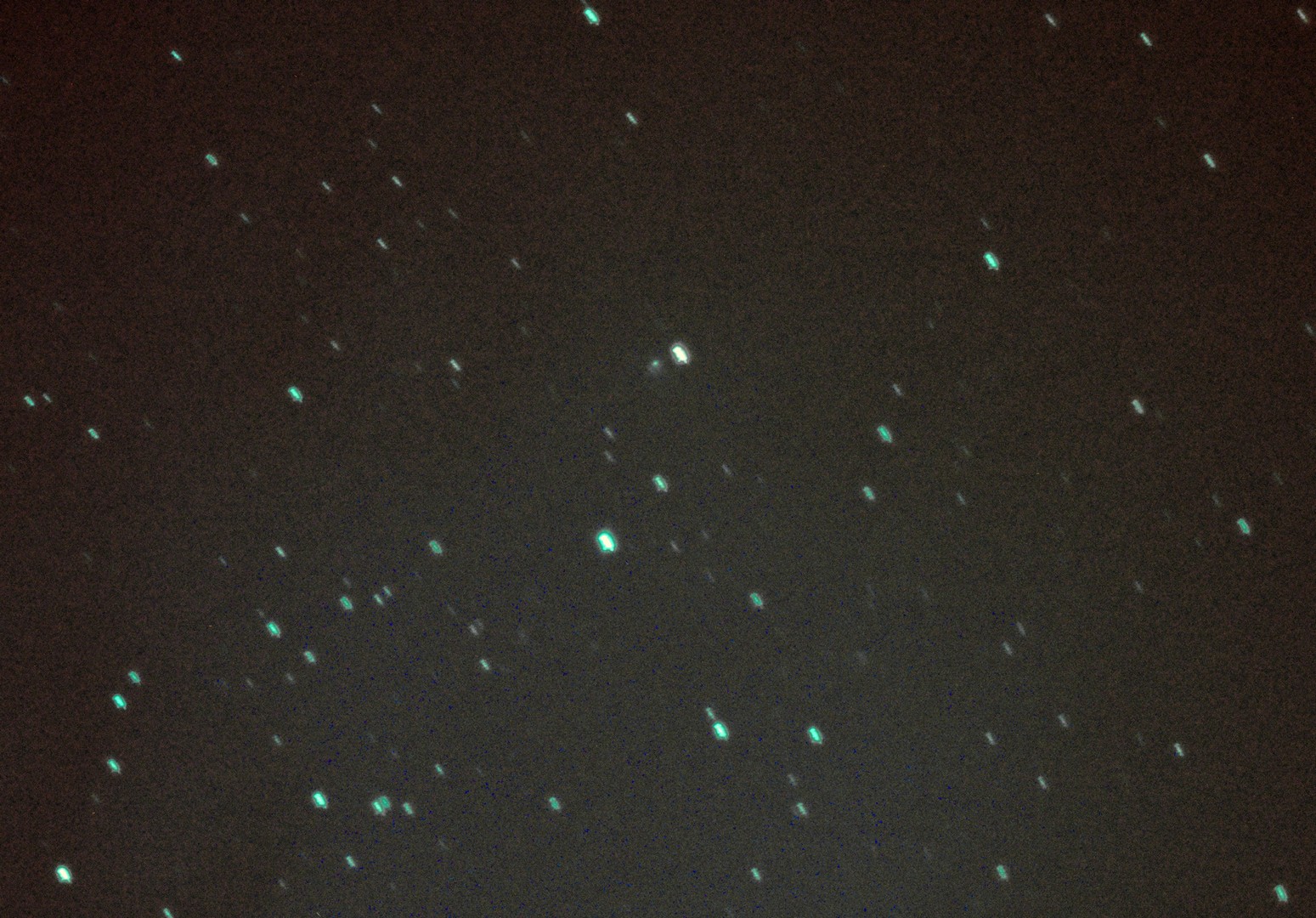 Ich habe die kleine Spur erst gesehen, als ich auf die Sterne entwickelt habe. Auf den Komet gehalten war es noch schwieriger. Fitswork hat die paar Photonen fast nicht wahrhaben wollen.