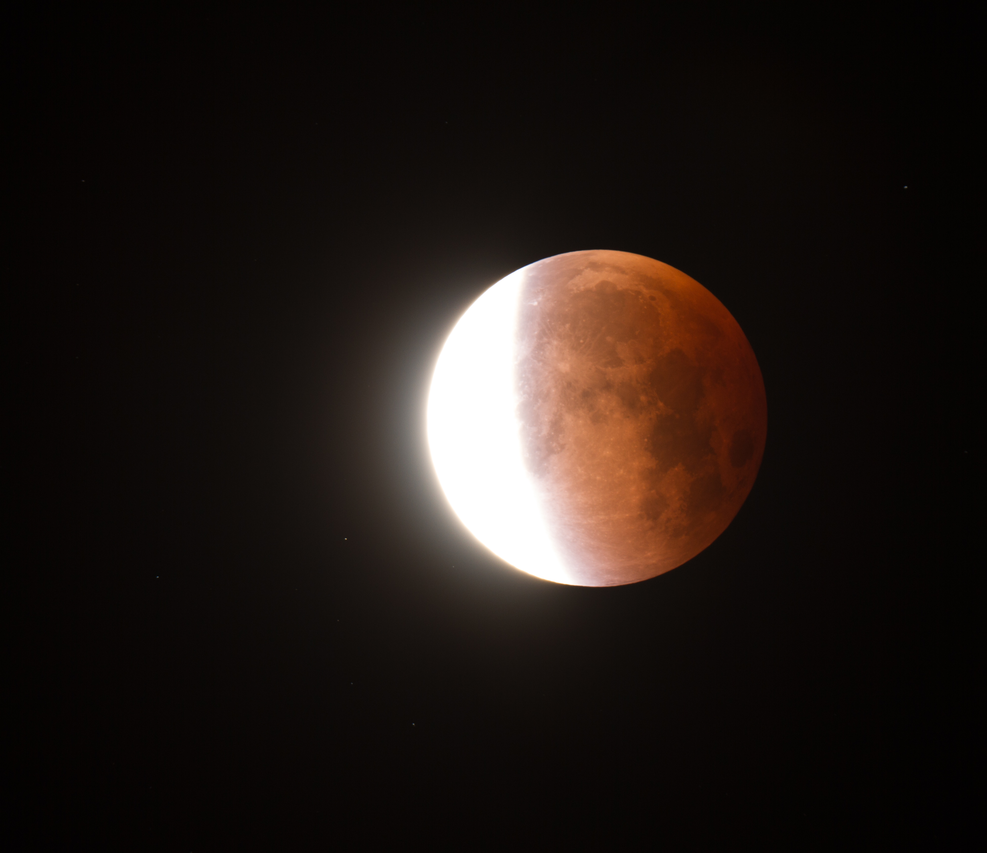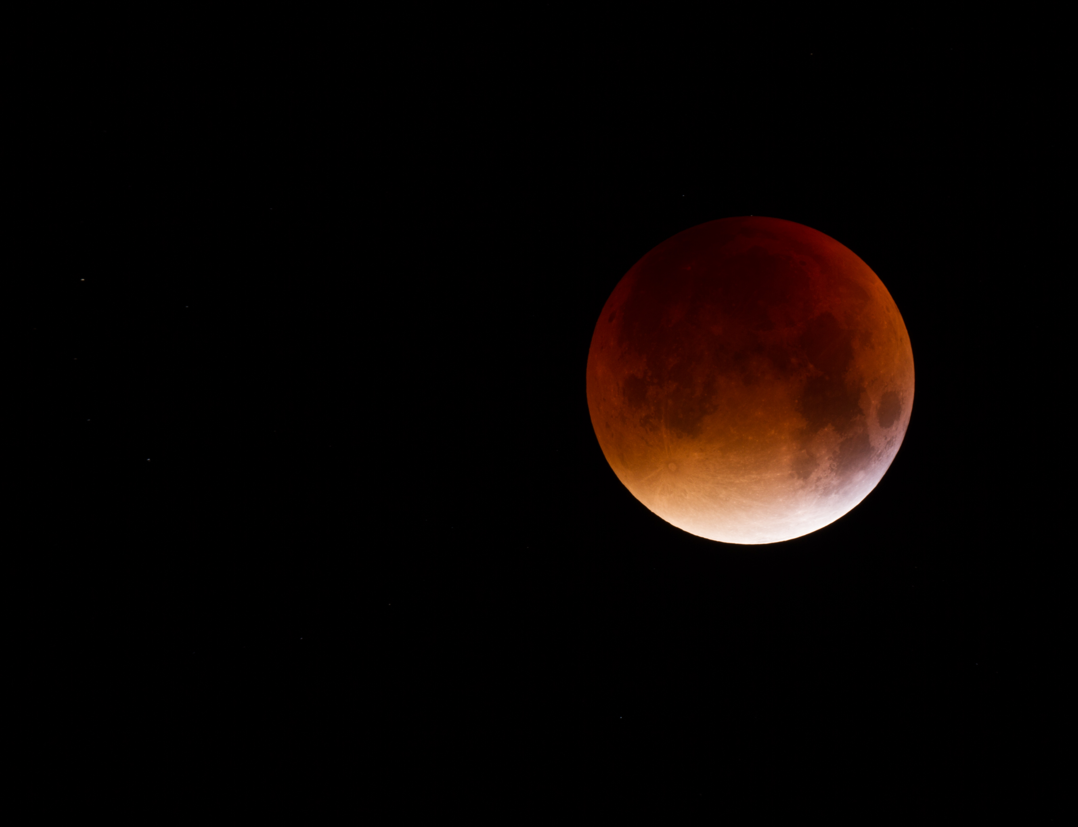 Die Mondfinsternis von der Sternwarte aus. Aufgenommen durch einen Apochromaten mit 60cm Brennweite.