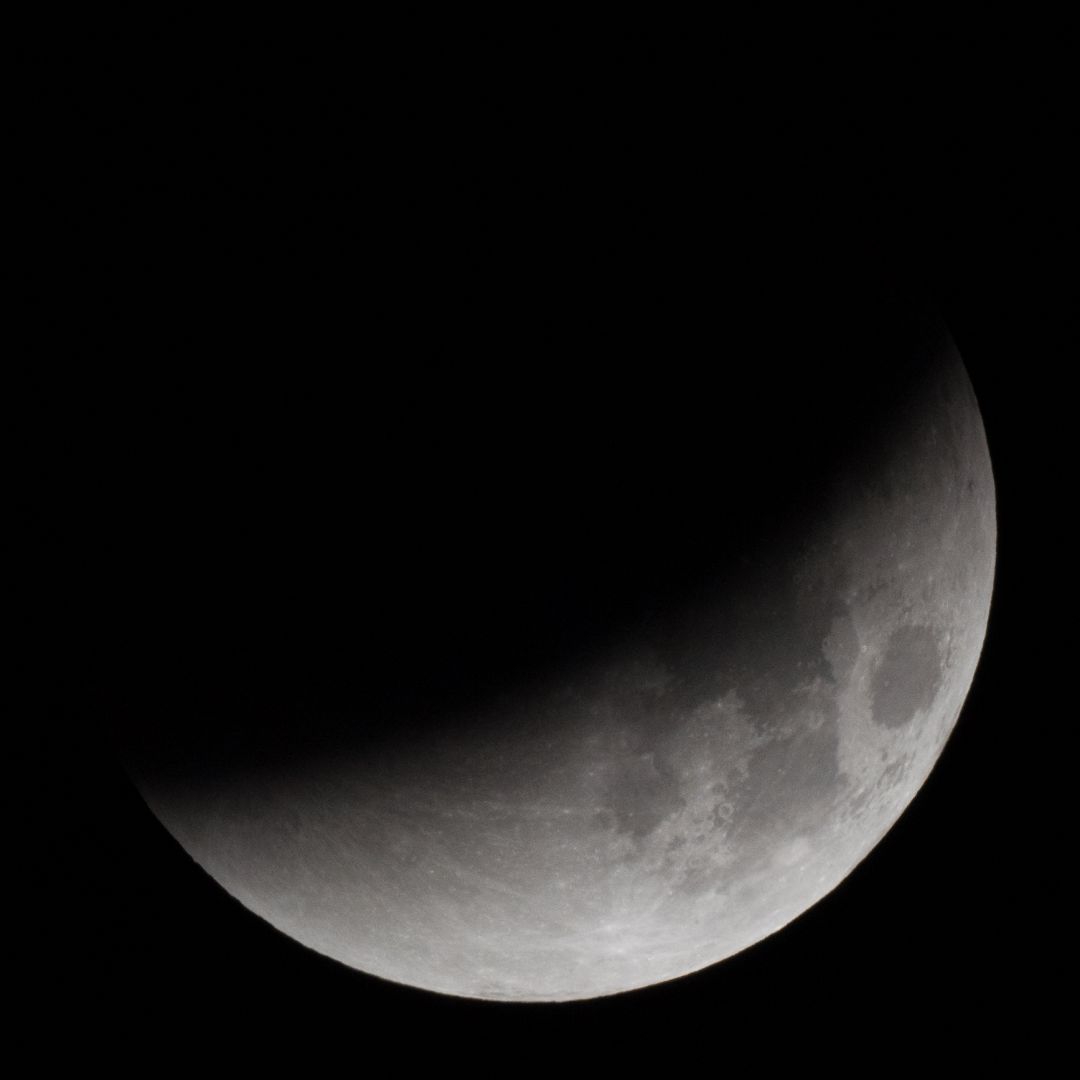 Eintritt in den Kernschatten. Bereits auf dem ersten Bild, aufgenommen gegen 3 Uhr, kann man links oben eine Verdunkelung erkennen.