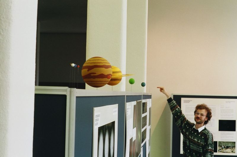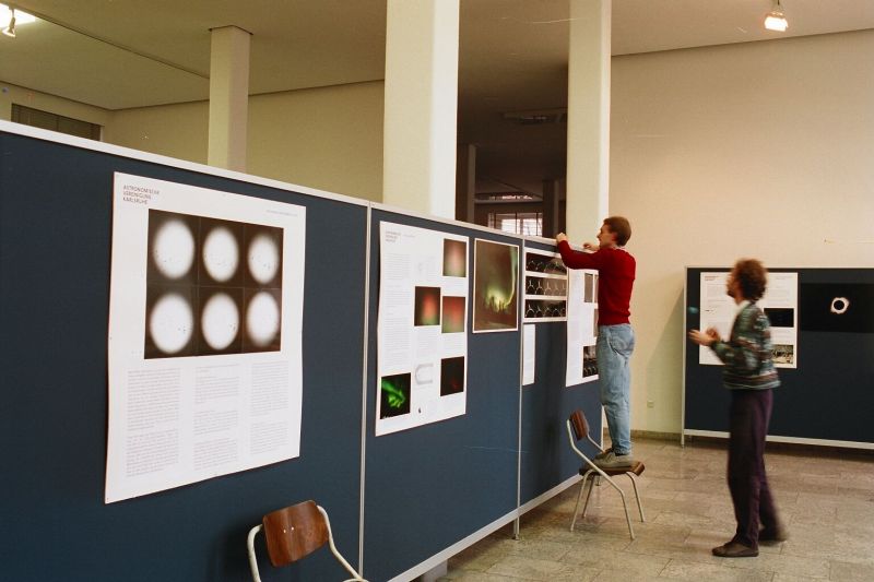 Schon vor der Wende war der Versuch gemacht worden, mit astronomischen Einrichtungen der Karlsruher Partnerstadt Halle Verbindung aufzunehmen, der jedoch, dem damaligen DDR-Stil entsprechend, im Unverbindlichen steckenblieb. Nach der Wende 1990 wurde die Beziehung intensiviert und die AVKa richtete eine Poster-Ausstellung über die Amateurastronomie im dortigen Raumfahrt-Planetarium aus. Damals bestand die Befürchtung, dass die Einrichtung aus Geldmangel aber auch aus mangelndem Interesse an der nun nicht mehr "verordneten" Astronomie geschlossen würde. Erheblich erweitert wurde diese Ausstellung 1991/92 auch im Karlsruher Naturkundemuseum gezeigt.