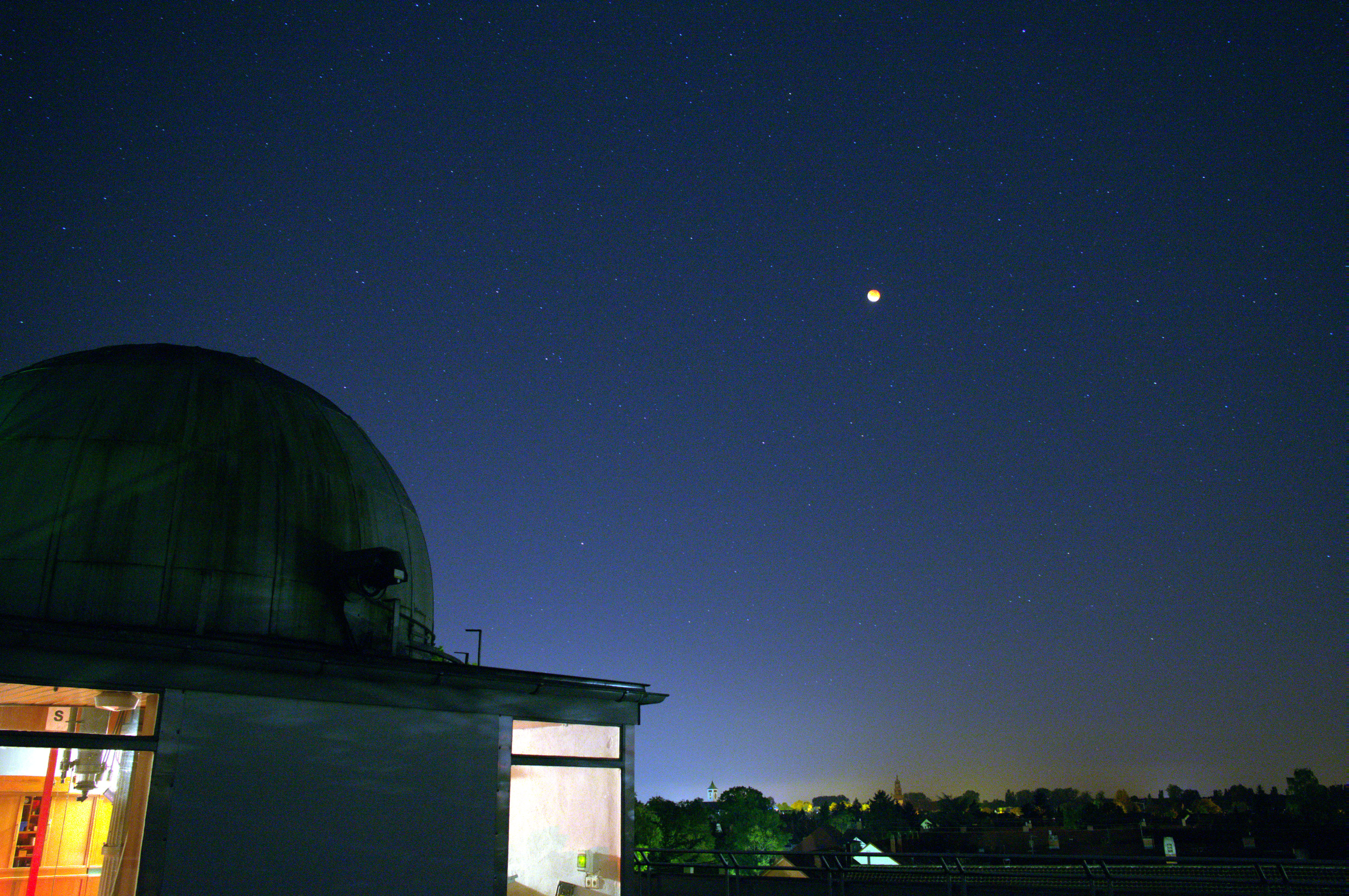 In der Nacht von Sonntag auf Montag findet ein relativ selten beobachtbares Himmelsereignis statt: eine totale Mondfinsternis. Wer Näheres über dieses interessante Naturschauspiel erfahren möchte, der kann die Sternwarte auf dem Max-Planck-Gymnasium in Rüppurr besuchen, wo Mitglieder der Astronomischen Vereinigung Karlsruhe mit Fernrohr und Information bereit stehen.