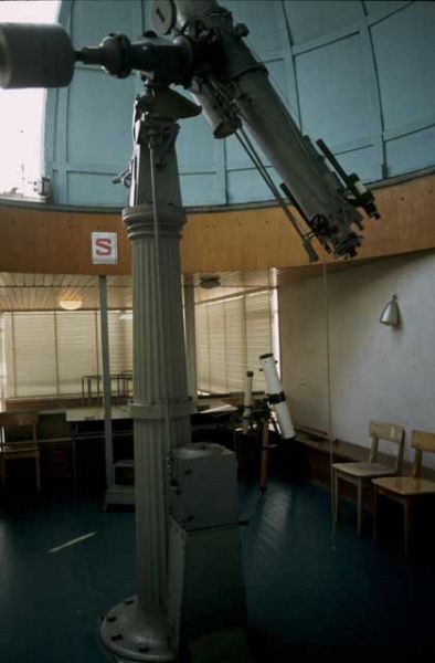 Unser Fernrohr ist ein historischer Refraktor von 1885 mit neuer Optik (siehe Geschichte). Bei Bedarf stehen weitere Instrumente zur Beobachtung zur Verfügung.